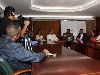 El alcalde de Cali, Rodrigo Guerrero Velasco, el Alto Consejero Presidencial para la Seguridad y Convivencia, Francisco José Lloreda Mera, y el secretario de Gobierno, Carlos José Holguín Molina, tratan en una reunión los resultados de la encuesta de victimización de la ciudad.