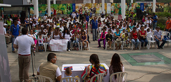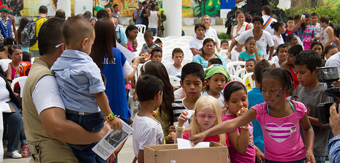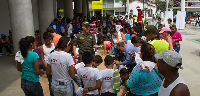 “Durante el acto, la Asesoría de Paz lanzó su campaña bandera para eliminar las líneas imaginarias, dado que son barreras que solo están en la mente, es necesario que los niños y jóvenes cambien sus elementos de guerra por elementos de paz, como el lápiz, los cuadernos, la educación, el deporte y la cultura, para el 2014 seguiremos trabajando para erradicar las líneas imaginarias en actividades como Lazos y los Canelazos por la Paz”, expresó Alexandra Hernández Cedeño, asesora de Paz.