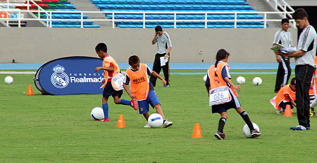 Por su parte, Carlos Salazar, coordinador del proyecto de escuelas sociodeportivas en Colombia de la Fundación Revel expresó que esta jornada de entrenamiento es el primer contacto de los niños con el proyecto, donde han sido valorados desde lo médico, lo técnico táctico para aplicar la filosofía del equipo madrilista: “Ellos juegan, nosotros educamos”.