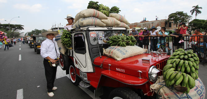 El desfile permitió la exhibición de los mejores yipaos que con racimos de plátanos incluidos daban fe de la potencia de sus motores.