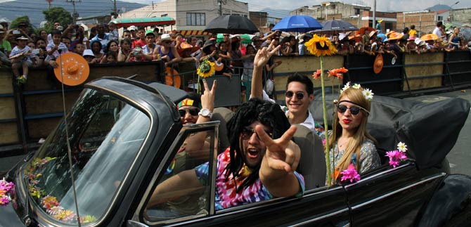 El Pontiac modelo 63 pitaba cual chiva moderna, pero como se trataba de lucir lo mejor, el Mercedes 57, digno de los adinerados del oeste, se abría camino para recibir los mejores aplausos.
