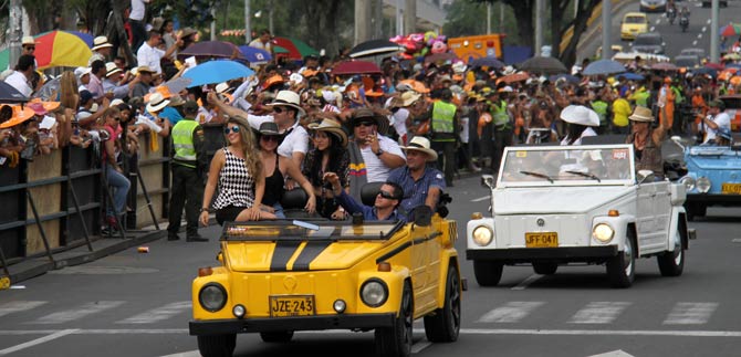 Una hilera de Volkswagen cuyos escarabajos se habían polichado con esmero. Después, 20 carros que hoy difícilmente tienen cabida en los parqueaderos modernos.