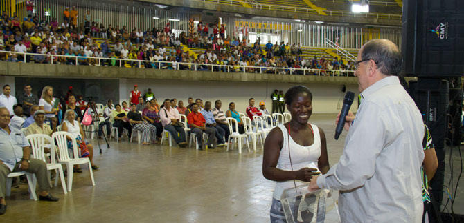 Con mucha alegría recibieron 469 familias la asignación de sus viviendas mediante sorteo para habitantes de zonas vulnerables del sector del jarillón del río Cauca, con el que conocieron la manzana y el número de su casa en la urbanización Llano Verde.