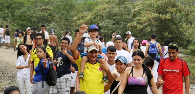 El Consejo Municipal para la Gestión del Riesgo y Desastres -Cmgrd-, Policía, Defensa Civil, Cruz Roja y Ejército Nacional coordinan la actividad que dará paso a cientos de visitantes que se aprestan aglutinados para comenzar la ruta.