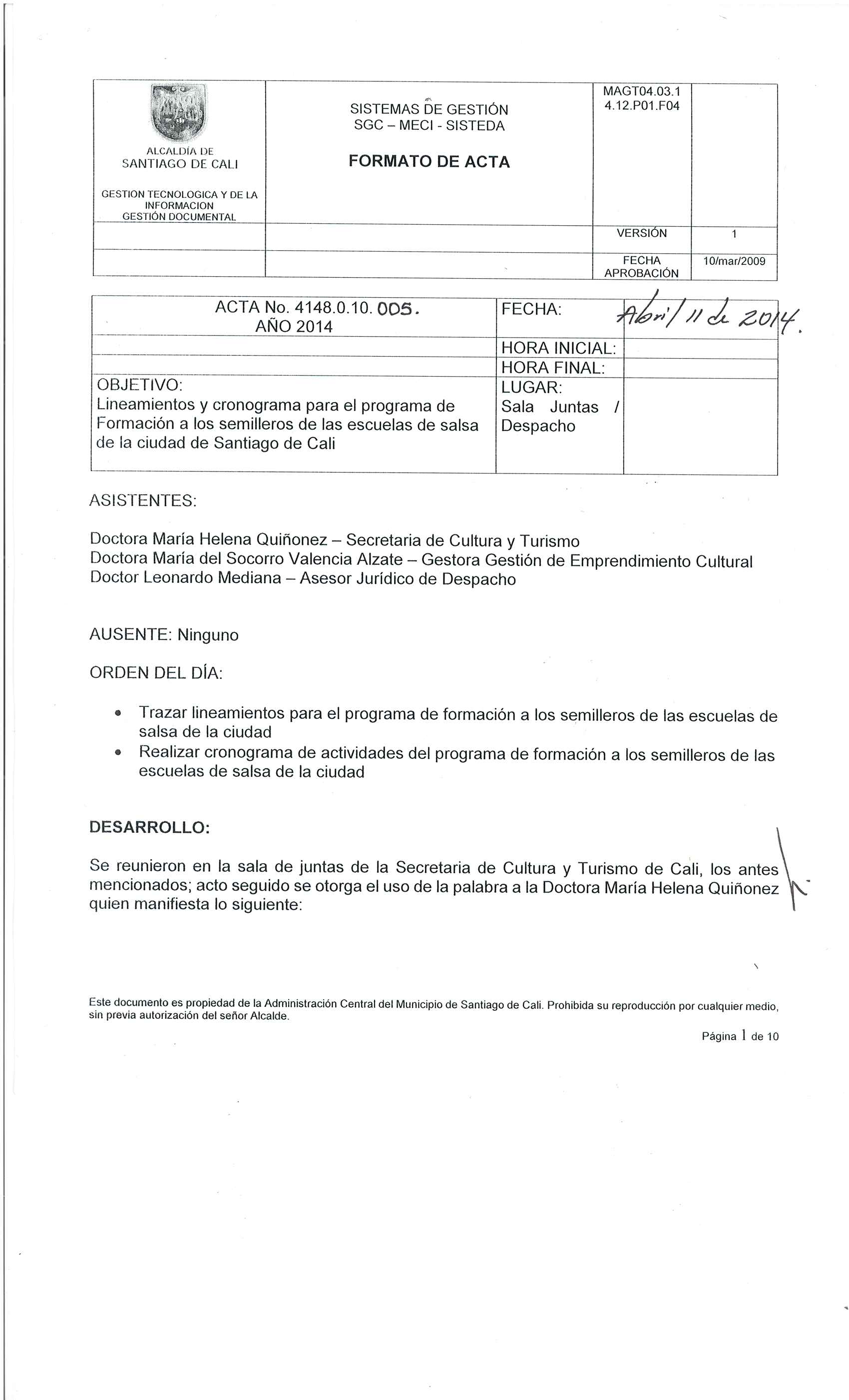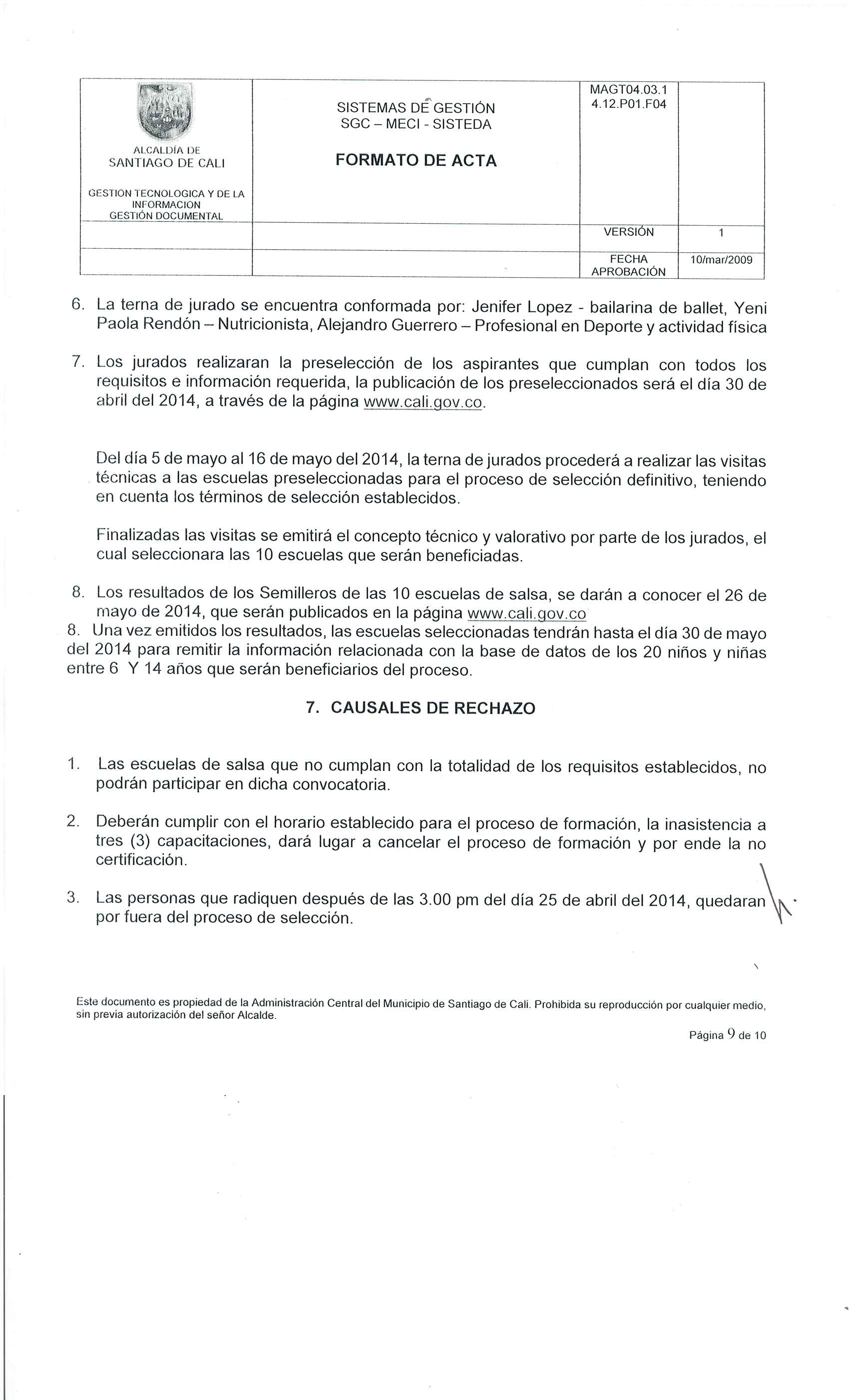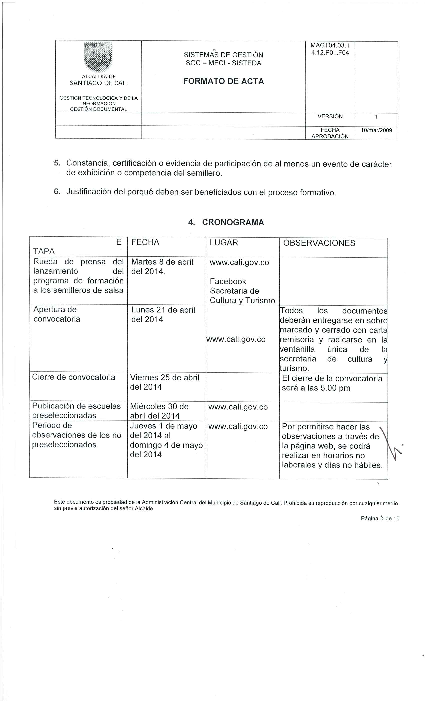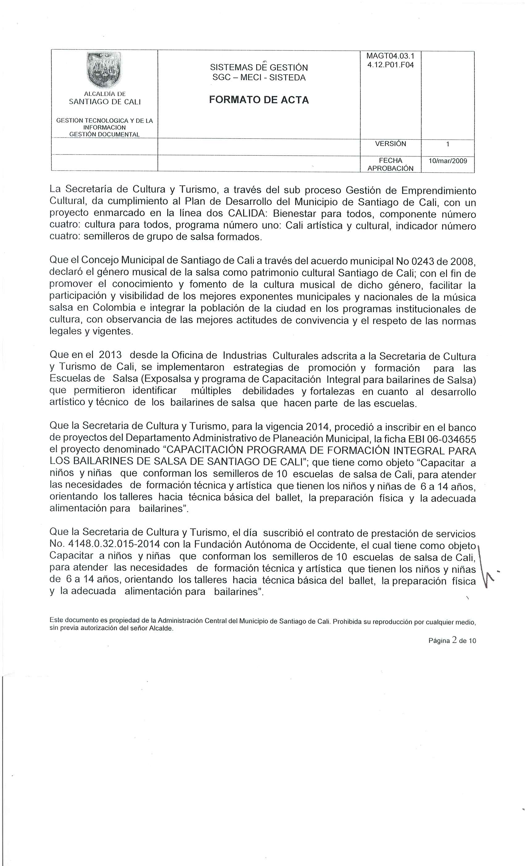 • No haber sido beneficiado por ningún proceso de formación en la Secretaría de Cultura y Turismo de Cali en la vigencia 2013.