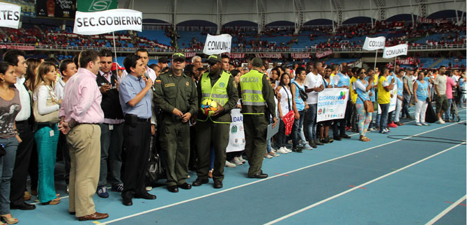 160 equipos pertenecientes a las comunas consideradas de alto riesgo desfilaron la noche del jueves 22 de mayo en el estadio Pascual Guerrero, a raíz de la inauguración del mundialito relámpago  ‘Calidosos’ por la Convivencia y Tolerancia de los jóvenes de la ciudad.