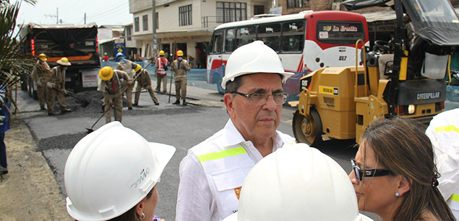El mandatario local se dirigió en compañía del secretario de Infraestructura y Valorización, Miguel Antonio Meléndez Carvajal; el secretario privado, Juan Esteban Ángel Borrero, y el presidente de Metrocali, Luis Fernando Sandoval, a la Calle 27 entre carreras 42 y 43 A, donde se llevan a cabo trabajos de cambio de lozas en concreto, en ambas calzadas de la importante troncal.
