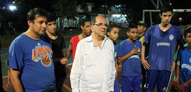 El alcalde de Cali, Rodrigo Guerrero Velasco, y el secretario de Gobierno Municipal, Carlos José Holguín Molina, entregaron este martes 3 de junio nuevos parques y zonas verdes con luz blanca, para el disfrute de los habitantes de la comuna 10.