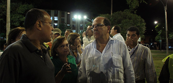 A partir de las 6:30 p.m., el Alcalde con parte de su equipo de gobierno, recorrieron los parques, ubicados en la calle 12C con carrera 31, en el barrio Colseguros; en la calle 12ª con carrera 36ª y 37, en el barrio Olímpico, y en la calle 11 con carrera 46, en el barrio Departamental.