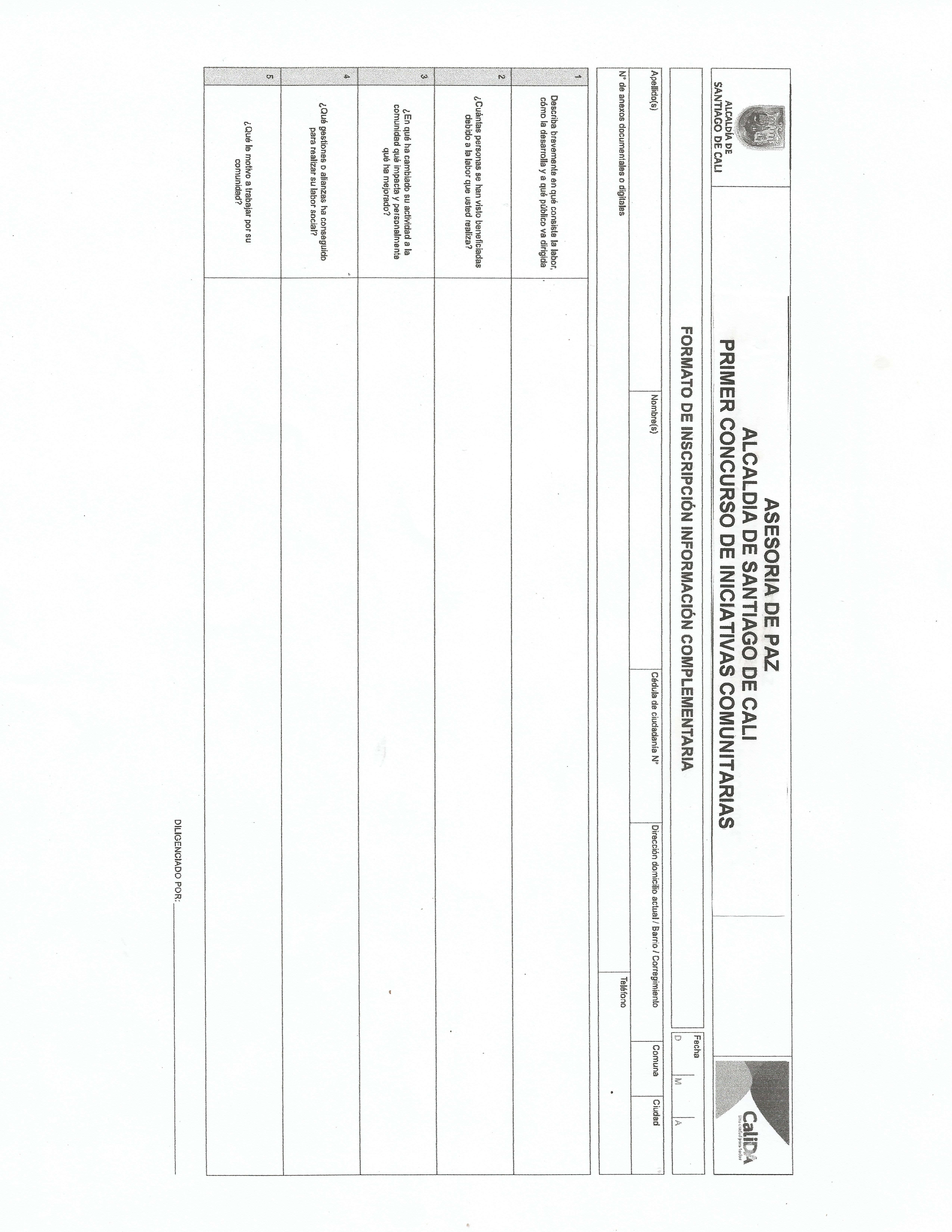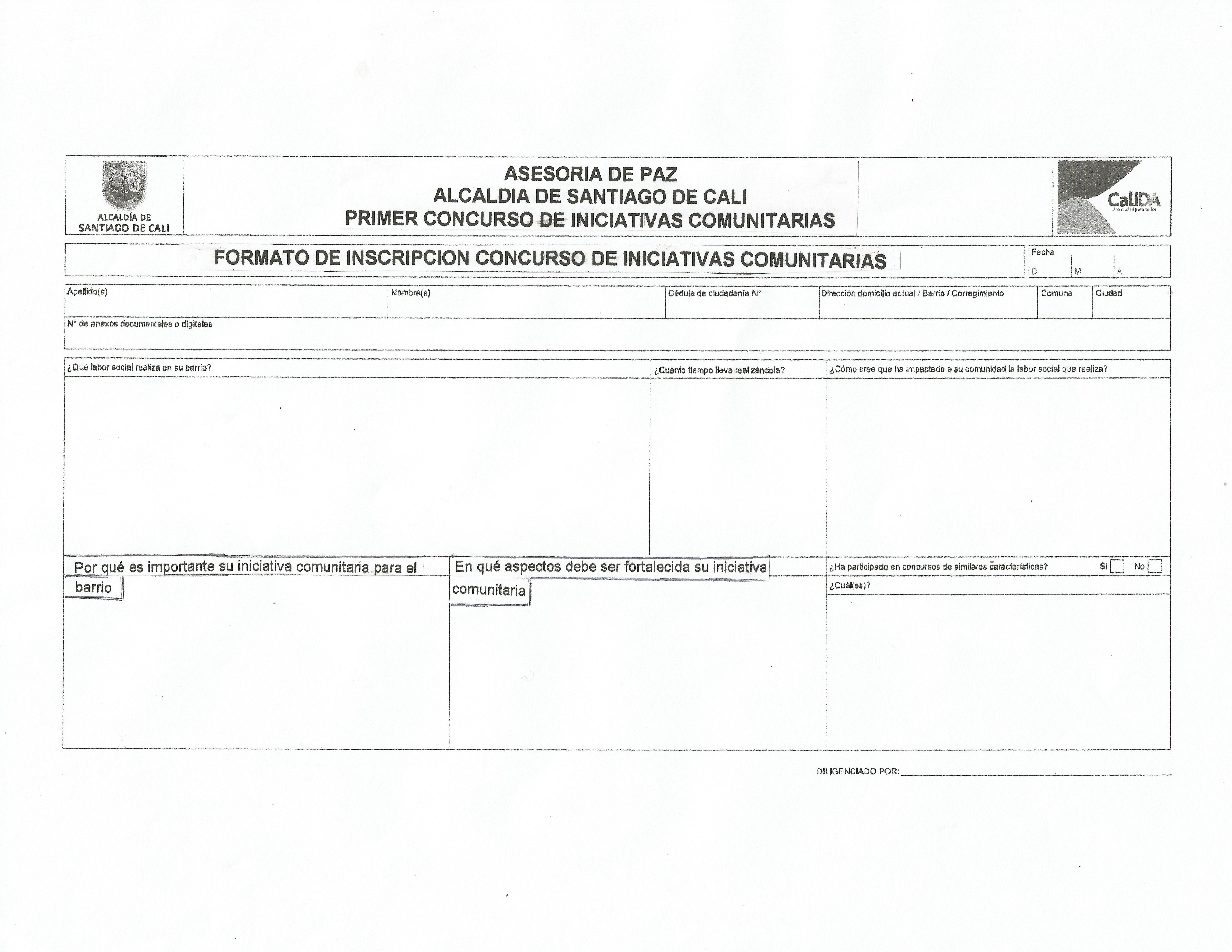 A partir de este martes 3 y hasta el 20 de junio, la Asesoría de Paz estará realizando las inscripciones de los dos concursos ‘Barrios y Vecinos Calidosos 2014’ e ‘Iniciativas Comunitarias: Medítele vos haces parte del cambio’, en los CALI y en las instalaciones de la Asesoría de Paz.