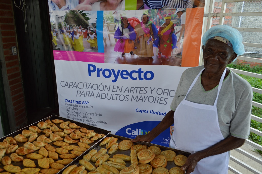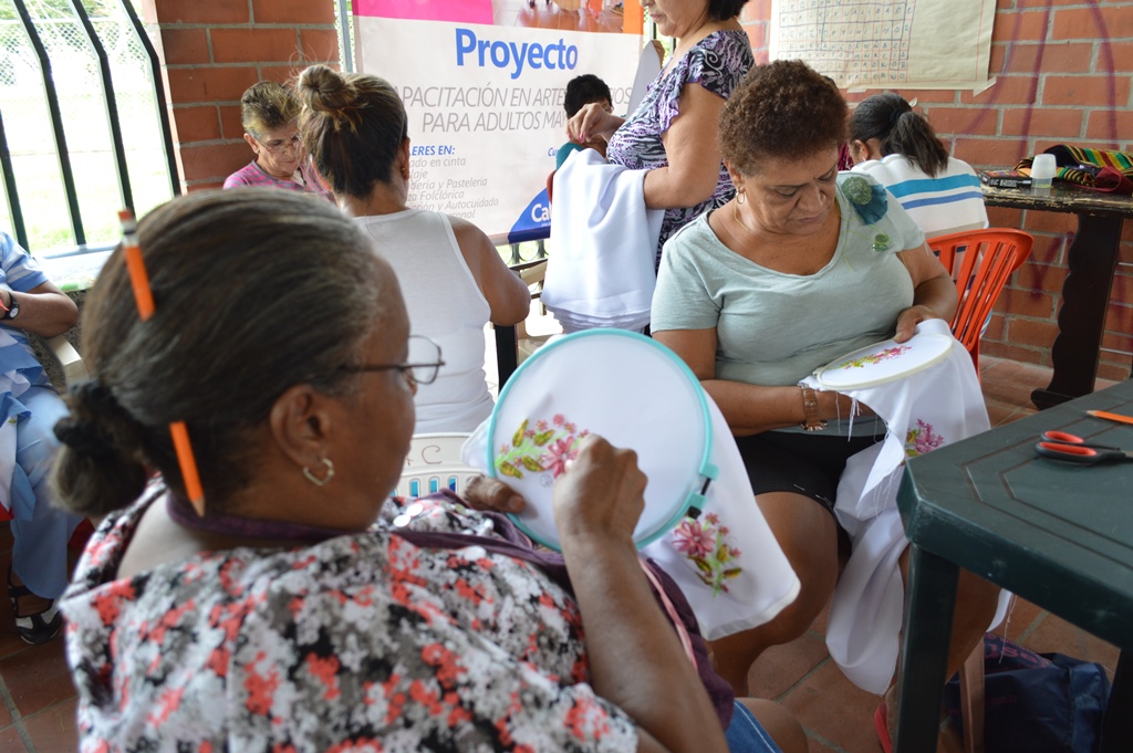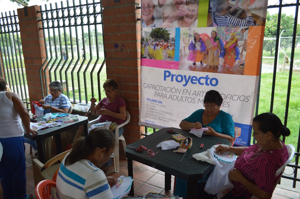 Gracias a la gestión de la Secretaría de Desarrollo Territorial y Bienestar Social, 300 abuelitos de escasos recursos, residentes en la comuna 21, en el oriente de Cali, se capacitan en artes y oficios variados como bordado en cinta, reciclaje, panadería y pastelería, danza folclórica, relajación y autocuidado y desarrollo personal.