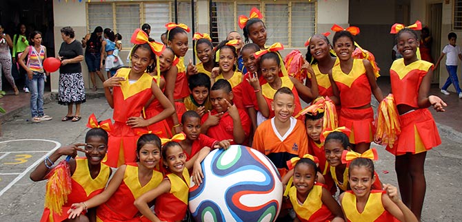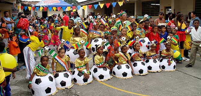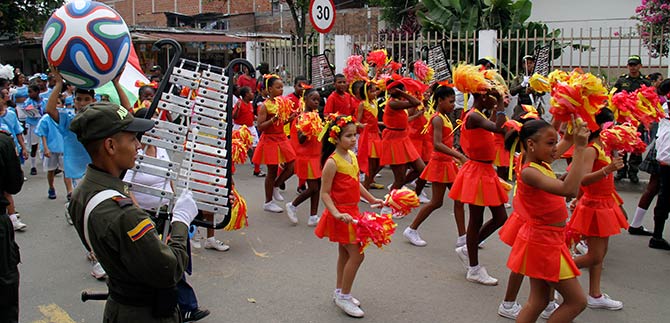 “Los estudiantes están muy comprometidos para formarse como facilitadores de paz, y durante el desfile mundialista organizado por la institución educativa, los estudiantes de grado noveno, prepararon una cartelera invitando a los jóvenes a regresar a los valores que se han perdido, a vivir en paz y a solucionar pacíficamente los conflictos… tenemos que destacar que el desfile por el barrio Puerto Mallarino, en sus diversos sectores como la Playita, el Jarillon, donde se han evidenciado problemas de convivencia, se han podido superar y los niños, adolescentes y jóvenes pasaron por esos lugares demostrando que si es posible generar la paz”: Zully Grajales y Gregor Adudelo, funcionarios de la Asesoría de Paz.