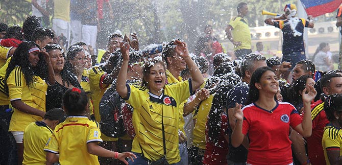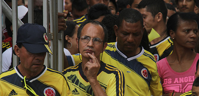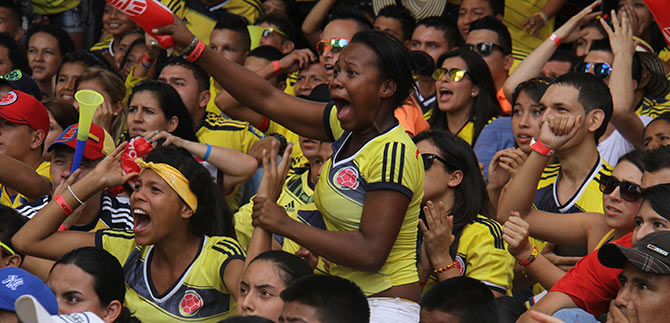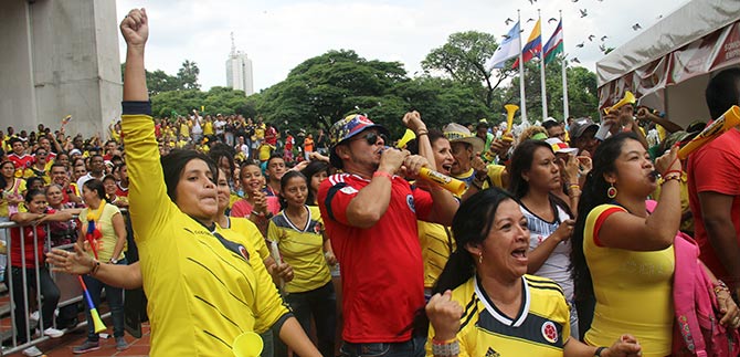Por su parte, los asistentes al estadio itinerante contiguo al estadio de softbol, ubicado en la carrera 39 entre calles 9 y autopista sur, contagiados por la fiebre mundialista y portando sus camisetas amarillas y rojas, sus vuvuzelas, trompetas y banderas, dieron muestra de civismo en medio del ambiente festivo por el resultado de nuestro representativo nacional en la cita orbital del fútbol.