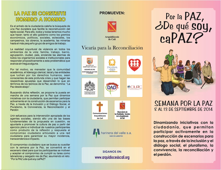 La Asesoría de Paz Municipal y la Arquidiócesis de Cali lanzaron oficialmente la Semana por la Paz, que se realizará del 7 de septiembre al 14 del mismo mes.
