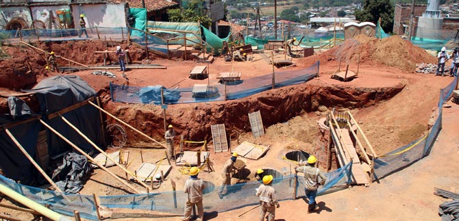 Conalvias adelanta las  cimentaciones de las intervenciones profundas de las pilonas  “hoy estamos iniciando el montaje de las  pilonas  9, 10 y 11, que están en el sector de Lleras,  una vez finalizada esta etapa comenzamos con la construcción de los edificios donde la gente esperará para ingresar al sistema. La instalación de cada pilona que pesa alrededor de 14 toneladas puede tardar hasta dos días”, explicó Gabriel Valencia Gerente de Conalvías.