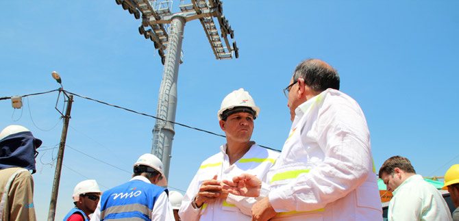 Alcalde recorrió obras de instalación de pilonas del Mio Cable