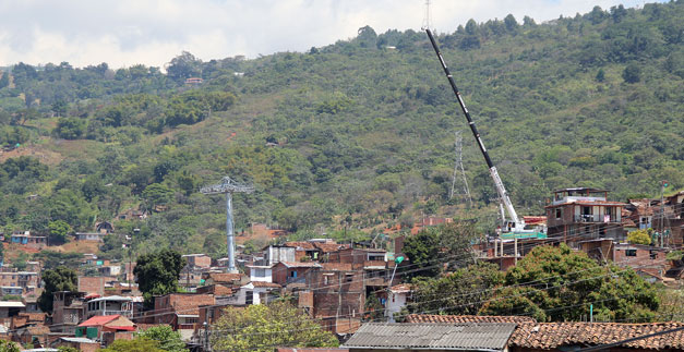En un 53 por ciento van adelantadas las obras de construcción del Mio cable, sistema de transporte  aerosuspendido que conectará la ladera con el terminal Cañaveralejo al sur de la ciudad. Hoy el Alcalde de Cali Rodrigo Guerrero Velasco, recorrió las obras y los sitios en donde se adelanta la instalación de pilonas, que son los postes metálicos por donde pasa el  cable que moviliza la cabina.