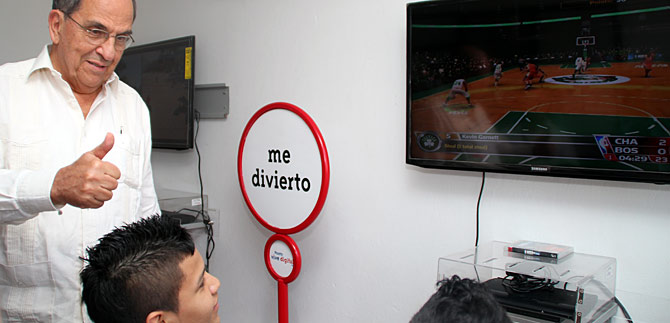 Hoyos Turbay al hacer entrega del nuevo espacio dotado de 20 computadores portátiles, 10 equipos de cómputo para capacitación, una zona de entretenimiento con 2 consolas y un televisor HD, también dijo a los niños y adultos asistentes que la tecnología no llega a reemplazar los libros y cuentos, sino para potenciarlos y darles más vida, en procura por masificar el conocimiento, los saberes y los valores para todos.