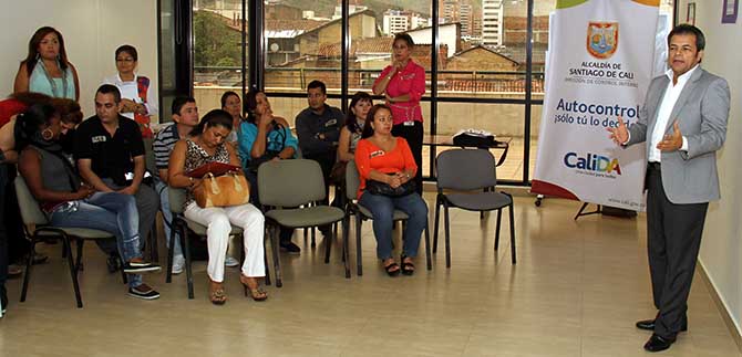 La Dirección de Control Interno realizó una capacitación sobre autocontrol con base en el proyecto ‘Fortalecimiento a la Aplicación del Control en la Administración Central  del Municipio de Santiago de Cali’, dirigido a 40 funcionarios de la Oficina de Atención al Ciudadano de la Alcaldía.