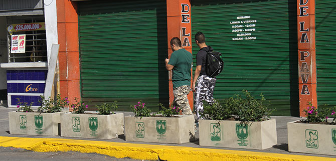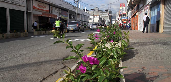 A partir de este lunes, grandes materas con veraneras adornan los andenes de la carrera 6 entre calles 15 y 16 en el centro de la ciudad, en un esfuerzo de la Alcaldía de Cali por recuperar estos espacios que se encontraban invadidos por ventas ambulantes.