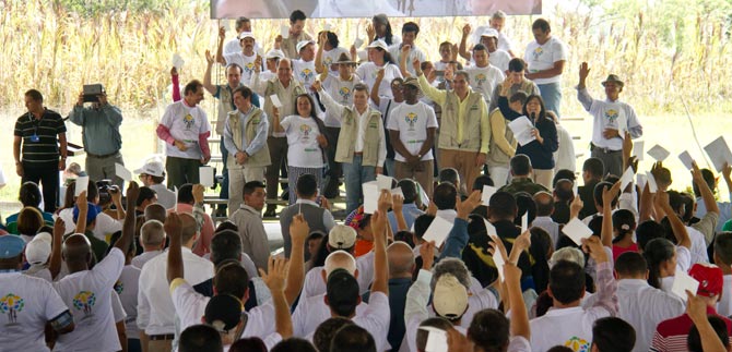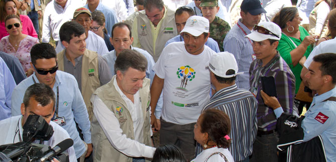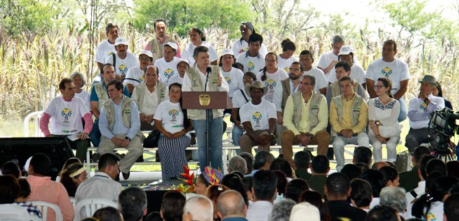 En el acto al que  asistieron aproximadamente 2000 personas, víctimas del Valle, Quindío y Risaralda se entregaron predios en compensación a víctimas de Los rastrojos, narcotraficantes y grupos guerrilleros como el ELN y las FARC, que además de operar en la región, perpetraron masacres como la de Trujillo y Alaska en Buga.