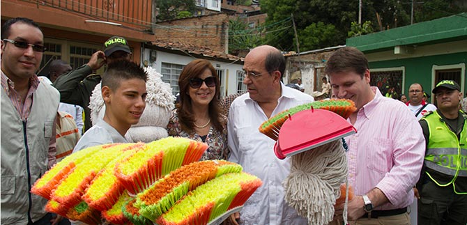 Empeñados en vender los productos que con dedicación elaboran durante la semana, casi una treintena de muchachos de la comuna 18 recorren los sábados las distintas calles y pasajes de la ladera suroccidental de Cali, ofreciendo escobas, trapeadores y elementos para el aseo.