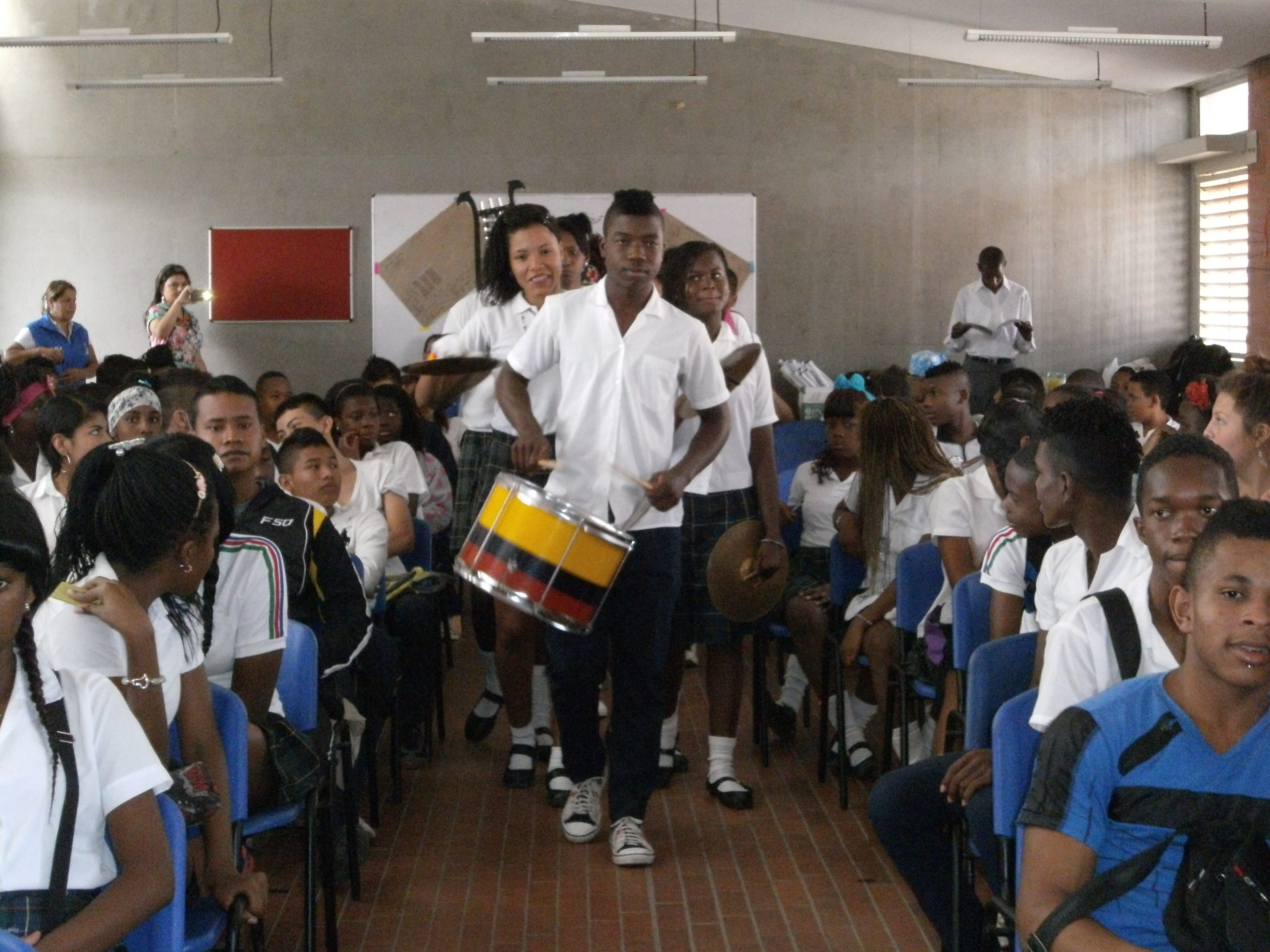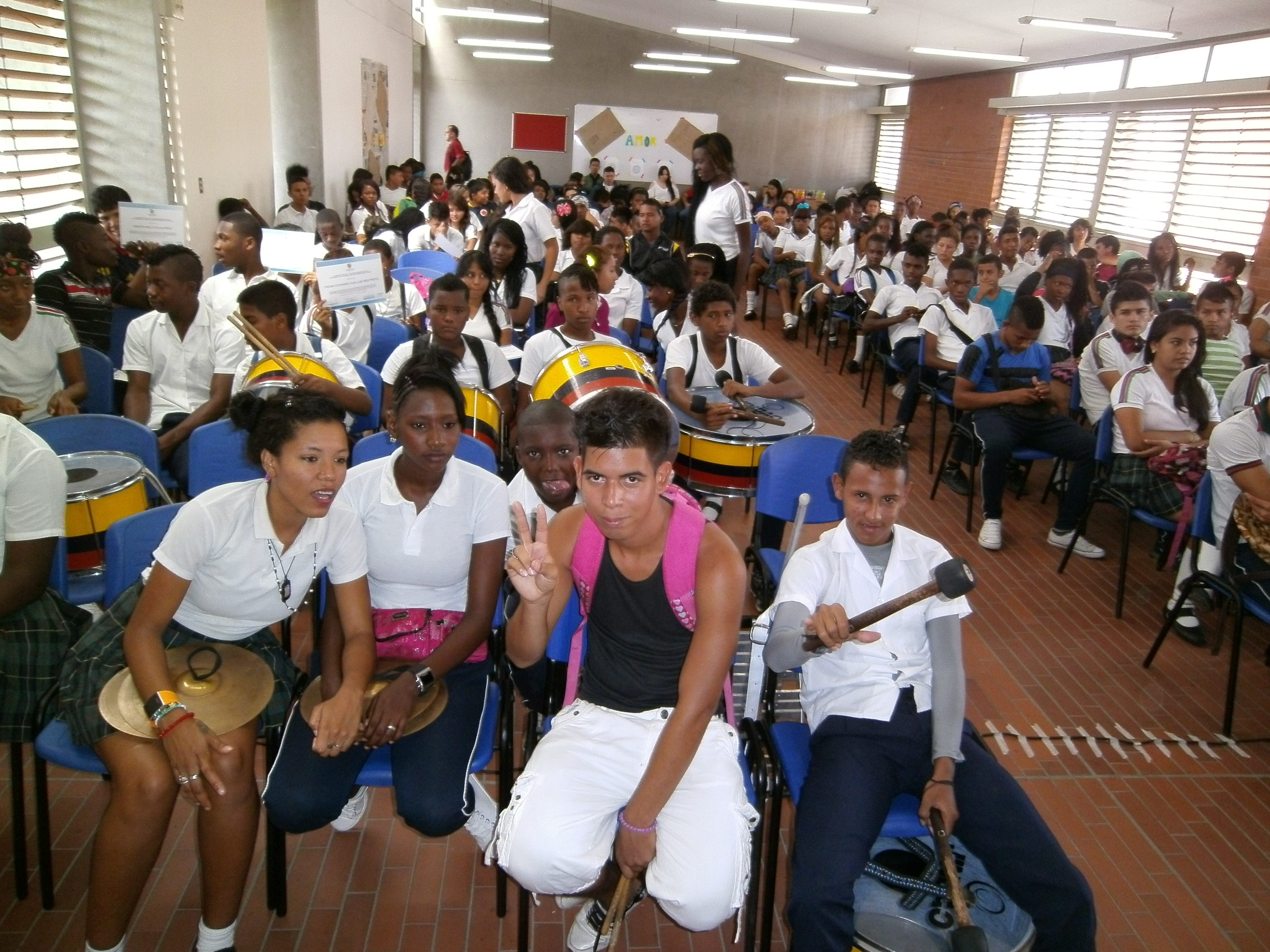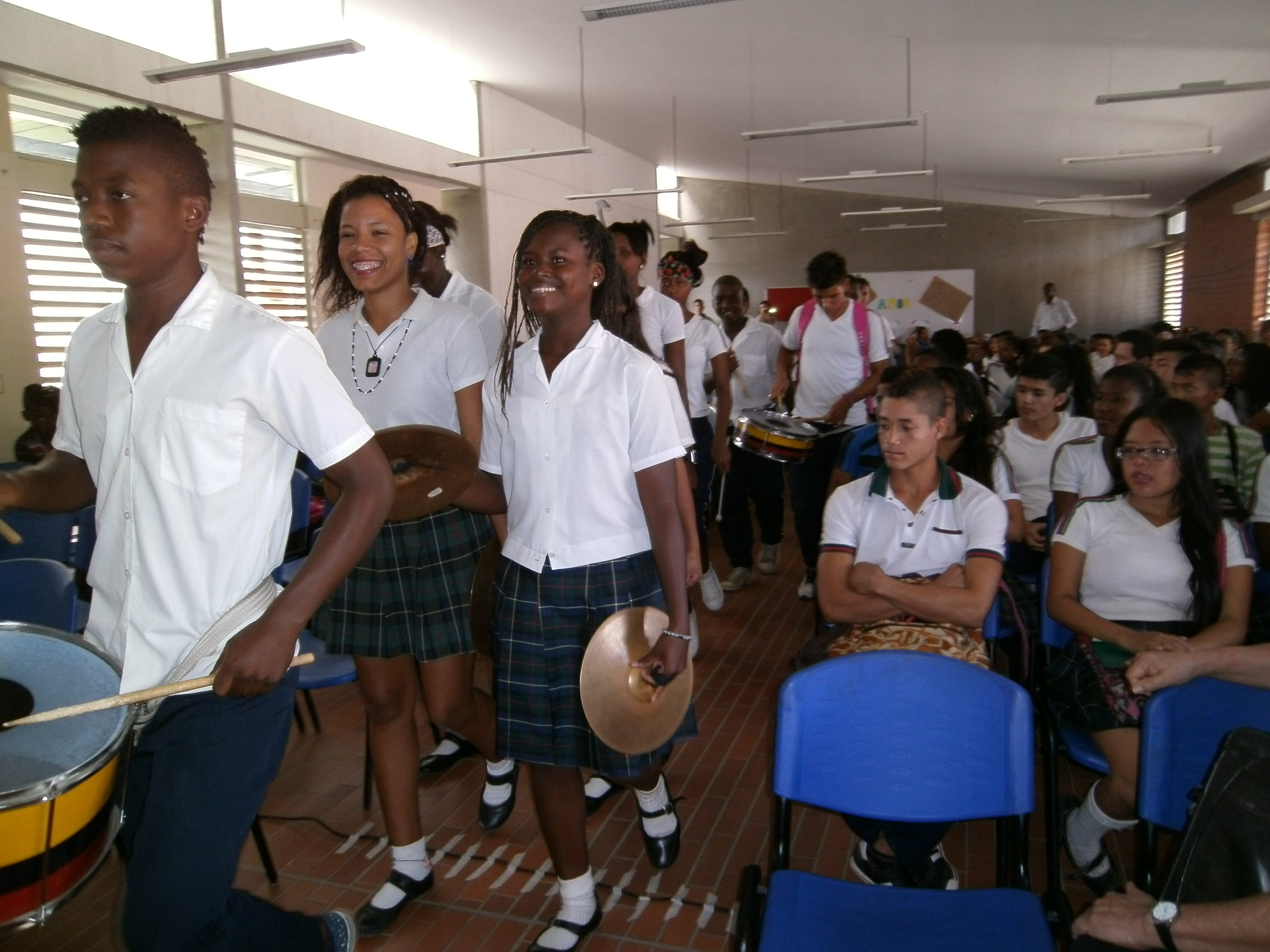 El acto fue amenizado por la Banda de Paz ImpactArte de la institución educativa y por el grupo de Raga, Lewis Danger del grado décimo, y contó con la presencia de Samuel Vanegar, rector de la institución educativa; Natalia Hoyos, líder de Proyectos Especiales de la Asesoría de Paz y Gonzalo Román, funcionario de la OIM.