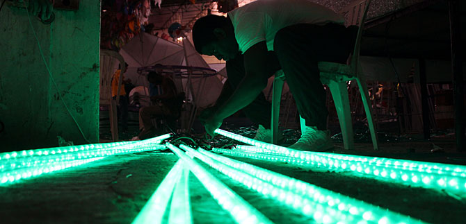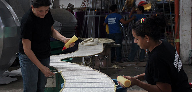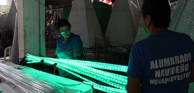 Para volver realidad la magia del alumbrado navideño, más de 150 personas en su mayoría mujeres decoran estrellas, regalos, árboles y otras figuras más en un taller del barrio Belálcazar.