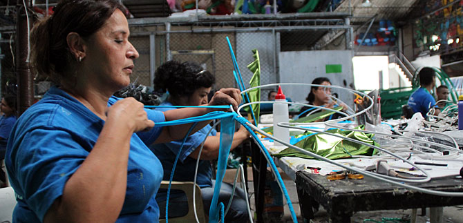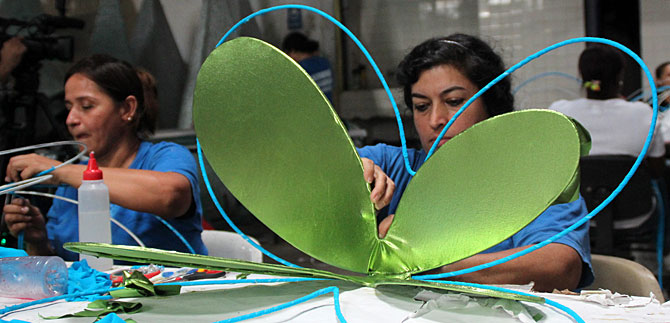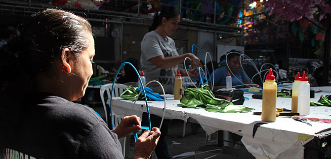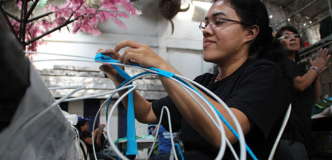 Esta mujer de postura humilde, pero entregada a su trabajo silencioso, sostiene mientras envuelve cuidadosamente una cita azul a una mariposa de alambre: “Es muy satisfactorio no solo tener trabajo para suplir las necesidades del hogar, sino que me hace sentir orgullosa de saber que estoy ayudando a embellecer la ciudad con un alumbrado que la vuelve más acogedora, maravillosa y colorida en estos últimos días del año y los primeros del nuevo”.