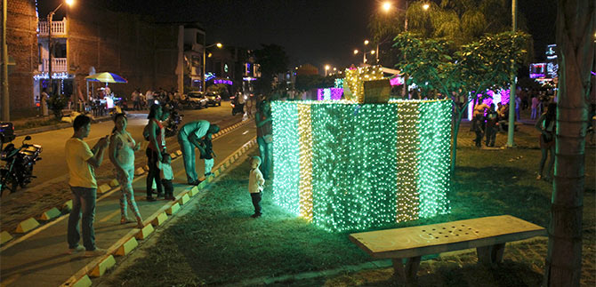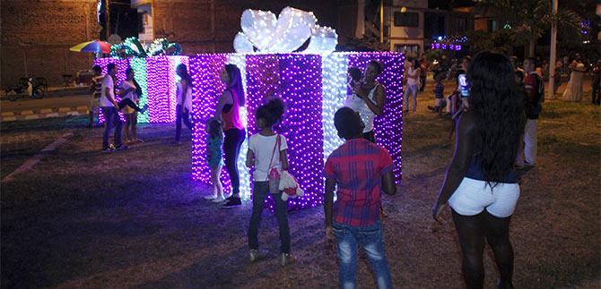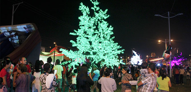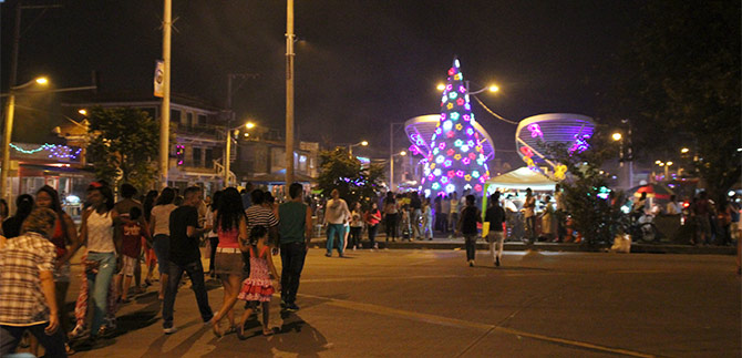 El Parque Longitudinal de la Transversal 72W ubicado en el barrio El Poblado de Cali, todos los días está de fiesta. Los árboles con hojas iluminadas, figuras resplandecientes y destellos multicolores, lo han convertido en el lugar de atracción para centenares de habitantes, que diariamente lo visitan deseando ver, oír y sentir la Navidad.