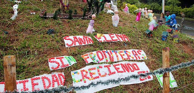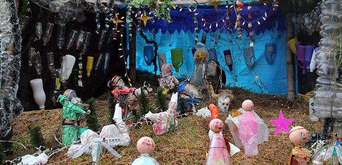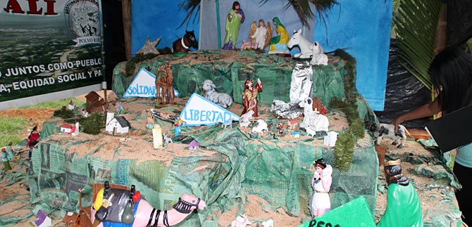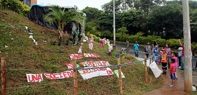 Sandra Enoe Celada, presidenta de la Junta de Acción Comunal del barrio Altos de Santa Elena y los vecinos del sector construyeron el pesebre con materiales reciclables ‘Previniendo las fronteras’ con el fin de evitar que se generé líneas imaginarias en este sector de la ciudad.