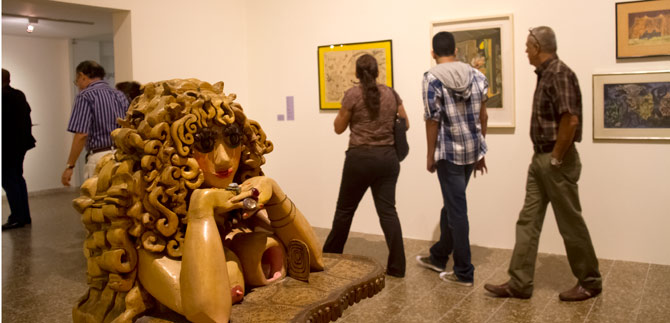En la sala Maritza Uribe de Urdinola, los espectadores podrán encontrar  obras donde expresa su apreciación por la belleza de la mujer y sus universos fantásticos, sus viaje imaginativos a mundos ficticios.