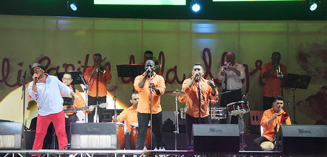 El espectáculo, que se realizó en las Canchas Panamericanas de fútbol, estuvo animado por el maestro Alexis Lozano y su orquesta Guayacán, junto con Javier Vásquez, la Orquesta Canela y Ensamble, entre otros de los artistas que se presentaron y que prendieron el inicio de la versión 57 de la Feria de Cali.