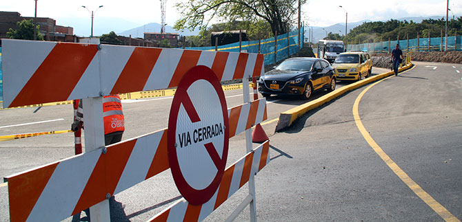 Adalbert Clavijo, jefe de Guardas de Tránsito de la Secretaría del ramo explicó que se procedió a cerrar la calzada principal que de Cali conduce a Palmira antes del Paso del Comercio, una vez se hicieron las últimas verificaciones y ajustes, para permitir la fluidez vehicular a una velocidad restringida de 30 kilómetros por hora en una longitud de 390 metros.