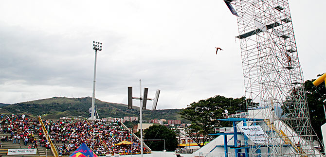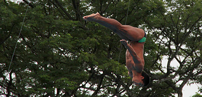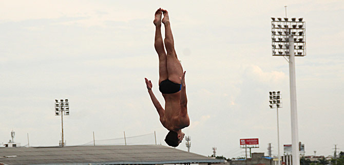 Desafiando la altura y la gravedad, 19 clavadistas exhibieron su talento en la piscina Hernando Botero O’byrne, de la Unidad Deportiva Jaime Aparicio, durante la primera jornada del torneo clasificatorio para la Serie Mundial de Clavados de Altura 2015.