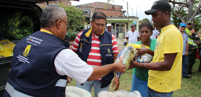 “Desde el día de ayer hicimos presencia en esta zona, con apoyo de la Policía Metropolitana de Cali y los Bomberos Voluntarios de la ciudad. Hemos hecho un inventario completo de las familias perjudicadas, que en su totalidad son 15 y con todos ya censados nos hemos venido a hacer entrega de estas ayudas humanitarias completas e integrales, para los afectados”, explicó Zamorano.