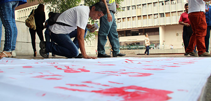 La campaña mundial ‘Manos Rojas’ se difundió con fotografías en los perfiles de las redes sociales de los caleños y principalmente en twitter con el hashtag (etiqueta) #MeditelealaPaz .