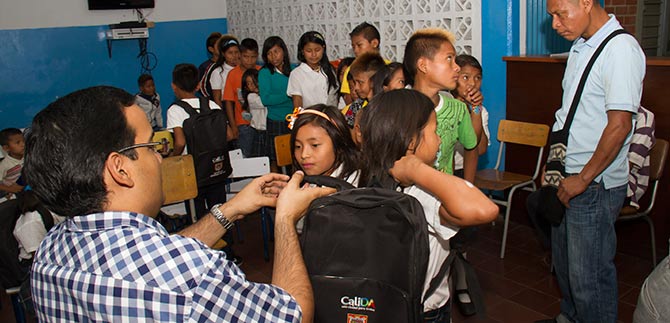 La Alcaldía de Santiago de Cali desde la Secretaría de Educación Municipal, año tras año, hace la entrega de paquetes escolares a la población víctima del conflicto, matriculada en sus instituciones educativas oficiales.