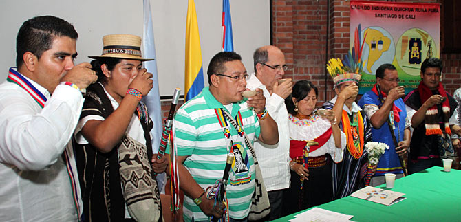 Con un tradicional ritual y brindando con chicha, los gobernadores de los cabildos indígenas Inga, Yanacona, Quichua, Guambiano, Nasa y Kofán, se posesionaron ante el alcalde Rodrigo Guerrero Velasco, para el período2015, de acuerdo a la ley 89 de 1890, que los reglamenta por un periodo de un año como gobernadores.