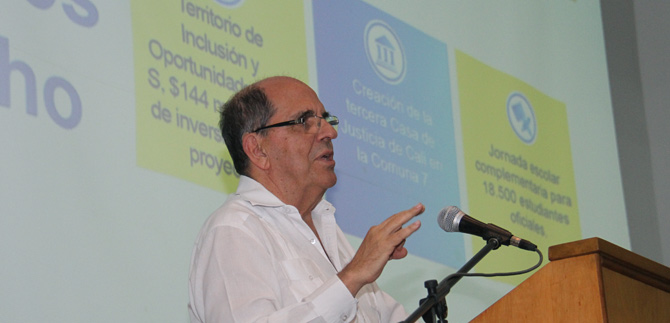 “En Cali se están registrando 66 homicidios por cada 100 mil habitantes, esta es la tasa de homicidios más baja de los últimos 20 años”, aseguró el alcalde de Cali, Rodrigo Guerrero Velasco, en el marco de un foro organizado por la Pontificia Universidad Javeriana, Cali, realizado este lunes 23 de febrero de 2015, en el que el mandatario local socializó la ponencia ‘La Realidad sobre la Seguridad’.