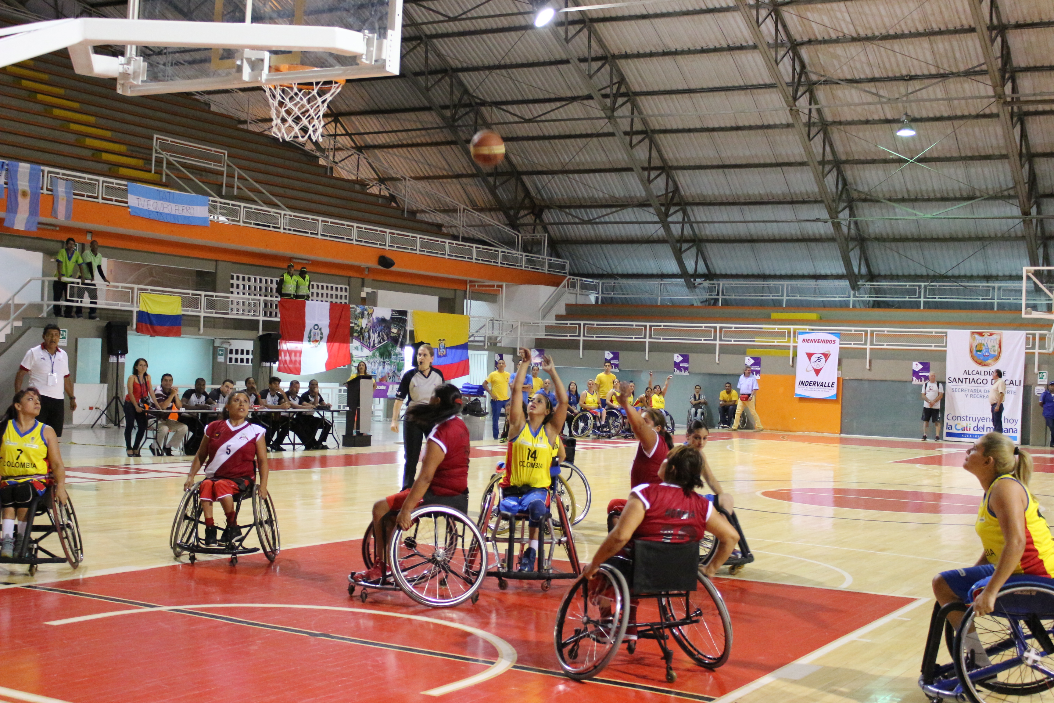 Deportistas de Argentina, Brasil y Perú desfilaron en el acto de apertura de la Copa Suramericana de Baloncesto en Silla de Ruedas Femenina, que se realizó en el Coliseo Evangelista Mora, con el apoyo de la Alcaldía de Santiago de Cali, a través de la Secretaria de Deportes y Recreación.