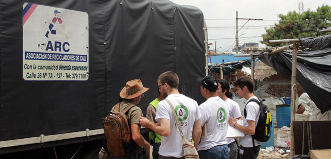 Durante el cuarto día de la Cumbre Internacional de Diseño para el Desarrollo, IDDS, expertos internacionales y nacionales en compañía de los recicladores seleccionados para participar de este evento, visitaron varias bodegas de reciclaje en diferentes puntos de Santiago de Cali, con el fin de conocer de manera directa el trabajo que realizan estas personas en su diario vivir, las mecánicas utilizadas y la forma de comercializar los diferentes productos.