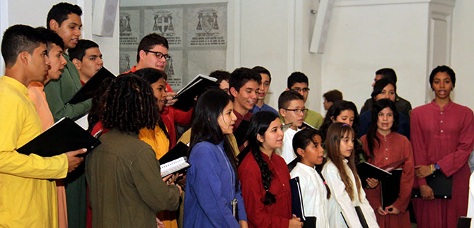 Este acto de acción de gracias inició con el canto gregoriano en latín denominado “O Filii et Filiae” escrito en el siglo XVI por el predicador francés Jean Tisserand y ejecutado para los actos de recordación de la gesta independentista de Cali por las voces de la Coral Juvenil Escolanía.
