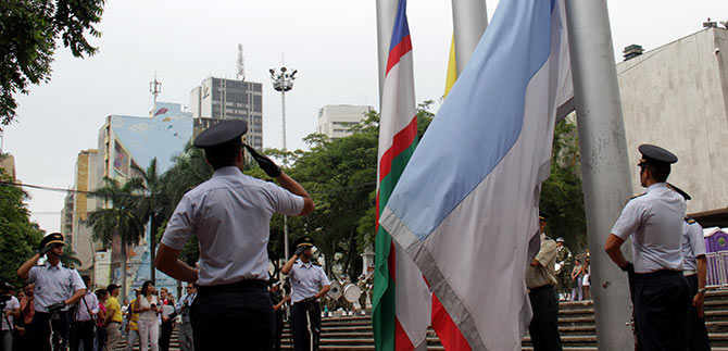 Al izar en la Plazoleta del Centro Administrativo Municipal las banderas, entonar las notas de los himnos de Colombia, Valle del Cauca y Santiago de Cali y guardando silencio a los próceres de ayer y los héroes de la patria de hoy, las autoridades caleñas encabezadas por el alcalde, Rodrigo Guerrero Velasco y las Fuerzas Armadas celebraron los 205 años de la Independencia de Santiago de Cali.