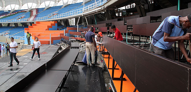 Entre tanto, la secretaria de Deporte y Recreación, Claudia Fernanda Rojas Núñez dijo que para cumplir con los requerimientos de la IAAF, se han realizado una serie de adecuaciones temporales al escenario, tal es el caso de las media lunas norte y sur han sido acondicionadas con el pavimento sintético apropiado, lo mismo que las correderas para salto largo.