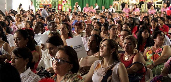 Ante un auditorio colmado de maestros y directivos docentes, la funcionaria enfatizó que este compromiso se orienta hacia la consolidación de los objetivos para hacer un nuevo país, desde metas como son la paz, con equidad y que Colombia sea la más educada de América Latina en 2020.
