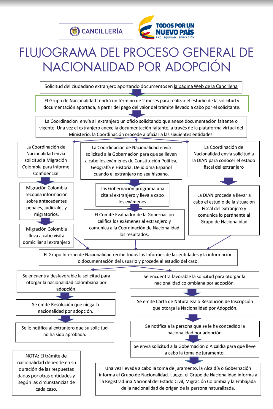 Vea el flujograma del Proceso General de Nacionalidad por Adopción
