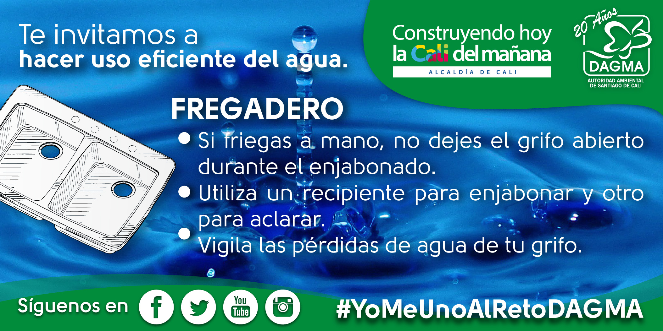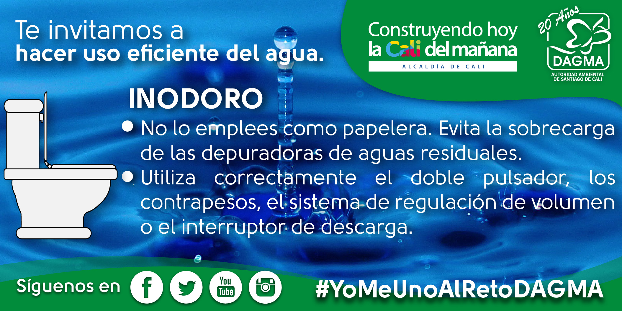 En el DAGMA con la resolución N°4133.0.2100 del 31 de Diciembre de 2014,  “por medio de la cual se adoptan los términos que hacen referencia para formular Programas de Uso Eficiente y Ahorro de Agua PUEAA y se fijan otras disposiciones  en el área urbana de Santiago de Cali”, se busca generar conciencia y la sostenibilidad del recurso hídrico.
