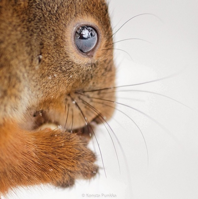 Konsta Punkka, es un joven finlandés de 21 años de edad, fotógrafo de la naturaleza al que le apasiona capturar emociones y momentos cercanos de la naturaleza y retractar la vida silvestre. En el invierno y el verano, alimenta a los animales que viven en los alrededores y por eso la mayoría de ellos lo conocen y le permiten acercarse mucho más de lo que permitirían hacerlo a otra persona. El resultado de este acercamiento a la fauna son maravillosas fotografías desde un ángulo poco común.