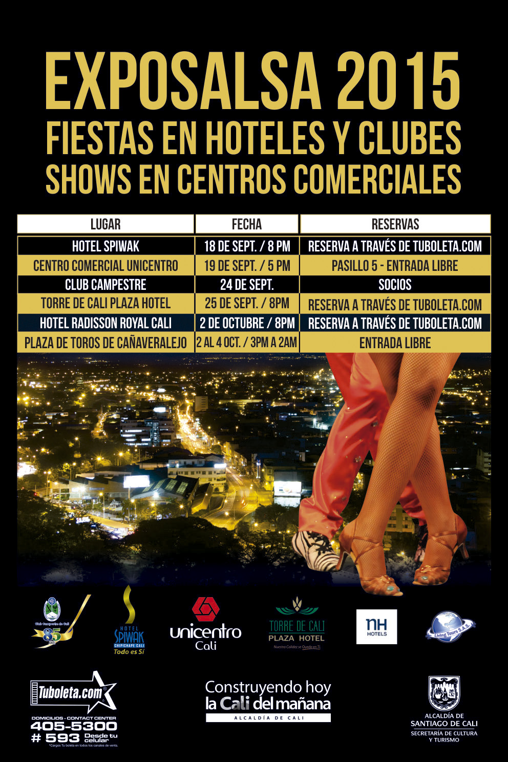 Como en el año anterior, ExpoSalsa llegará a los hoteles, centros comerciales  y clubes caleños, ofreciendo un escenario exclusivo para los amantes de este género musical, beneficiando a las escuelas que recibirán el resultante de la taquilla.